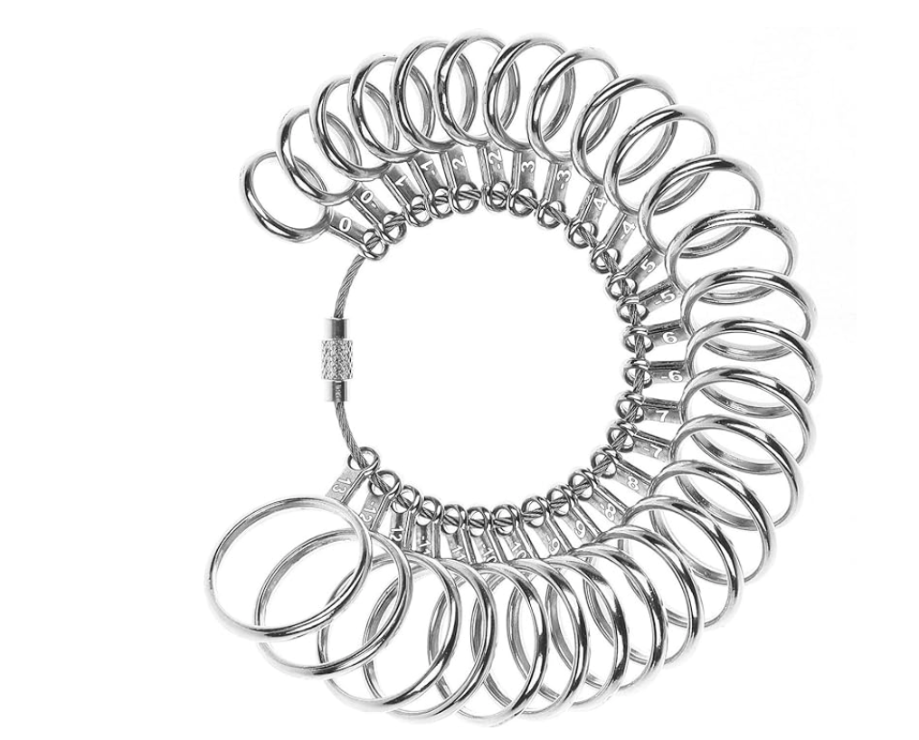 There are many super affordable plastic or metal ring sizers you can get on sites like ours, or purchase from quick delivery service sites like Amazon for $10 or less. The best ones to purchase for accuracy are ones that have a similar width to the one you are planning to purchase.