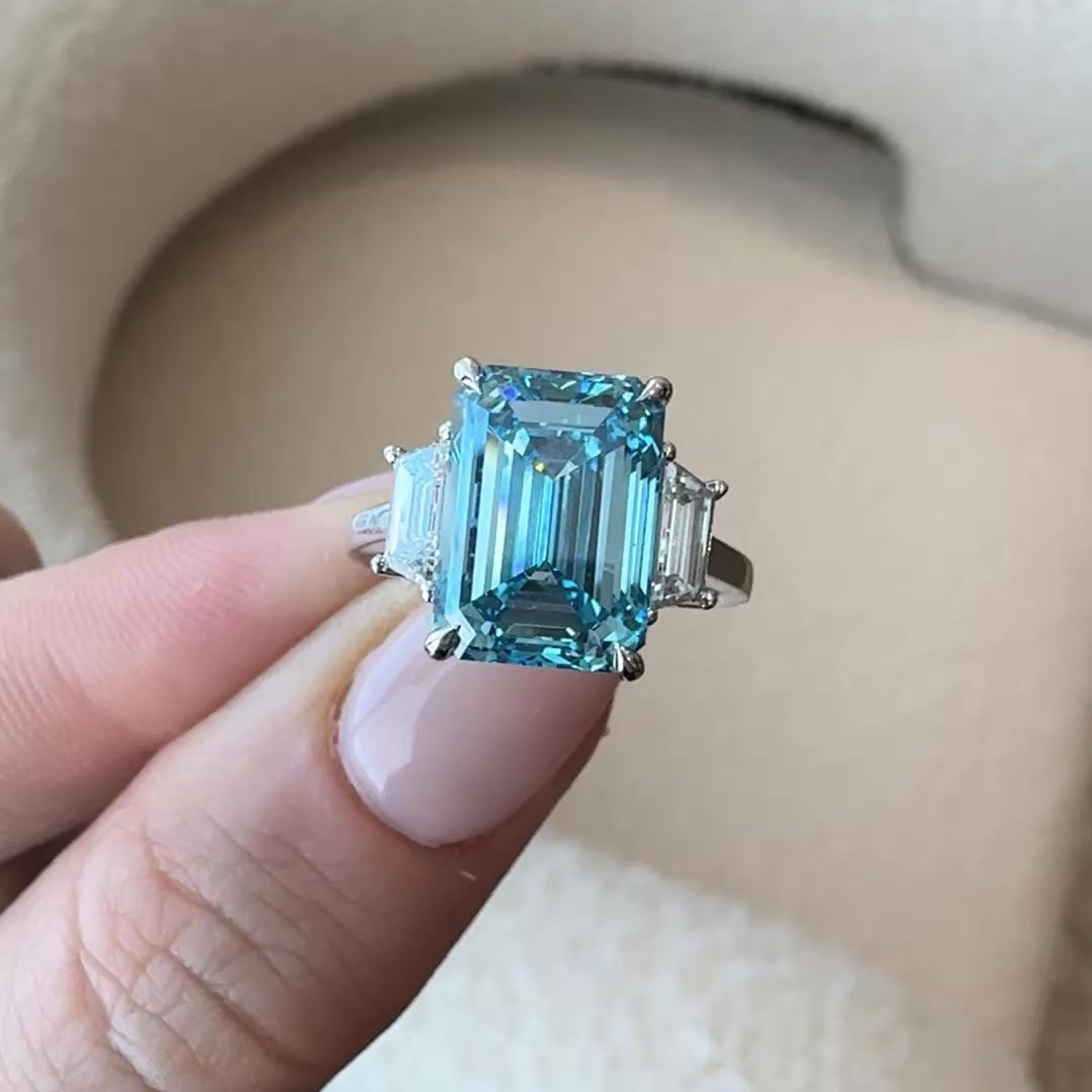 Lab Diamond Ring - Fancy Vivid Blue Emerald 6.05 ct VS1